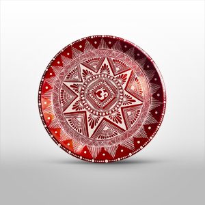 Blend vibrant artistry with durability of steel to create a centerpiece for your spiritual rituals with the Thali (11.5 x 11.5 x 1.5 cm)